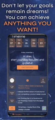 Med GoalJournal får du kraften att inte bara definiera dina drömmar, utan också att systematiskt bryta ner dem till hanterbara steg. Appen uppmuntrar dig att formulera dina största ambitioner med avsikt att omprogrammera ditt undermedvetna, vilket i sin tur stärker din motivation och positivitet för dagliga uppgifter. Upplev fördelarna med ett förbättrat tankesätt som ökar din produktivitet, stärker din självkänsla och fördjupar dina relationer. GoalJournal bygger på beprövad positiv psykologi och effektiva produktivitetsmetoder för att säkerställa att du fokuserar på det mest värdefulla i livet.