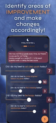 GoalJournal är din personliga följeslagare för att kultivera ett rikare och mer fokuserat liv. Denna applikation är omsorgsfullt utformad för att vägleda dig genom processen att sätta meningsfulla mål, utveckla mindfulness och förankra en attityd av tacksamhet i din vardag. Genom att erbjuda intuitiva verktyg för att följa dina sinnesstämningar, omforma beteenden och föra en dagbok över dina tacksamhetsstunder, hjälper GoalJournal dig att behålla skärpan på det som verkligen driver dig framåt. Det är en integrerad plattform för att förbättra ditt mentala välmående och din personliga utveckling.