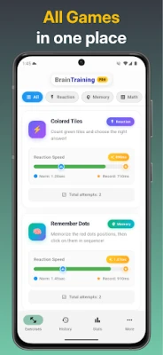Denna applikation förenar neurovetenskapliga principer med en rolig och spelifierad progression, vilket gör varje övning både meningsfull och motiverande. Oavsett om du fokuserar på att förbättra ditt minne eller att utmana dina reflexer, tar varje genomförd session dig närmare din fulla mentala potential. Upptäck den positiva skillnaden som högkvalitativ mental träning kan göra i ditt dagliga liv och låt dig utforska din hjärnas kapacitet genom ett engagerande och resultatinriktat program.