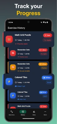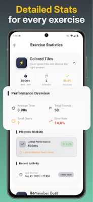 Upplev en banbrytande metod för mental träning med en applikation som är vetenskapligt underbyggd och skräddarsydd för att optimera din hjärnfunktion. Varje session anpassar sig dynamiskt till dina framsteg, vilket garanterar en optimal nivå av utmaning som driver verklig kognitiv förbättring. Genom engagerande övningar får du en personlig träningsresa som inte bara är effektiv utan även rolig, komplett med detaljerad statistik för att följa din utveckling.