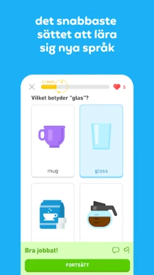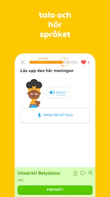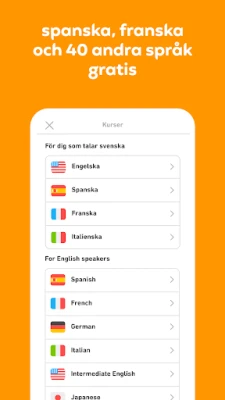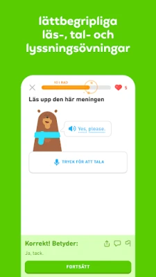 Duolingo gör det roligt och gratis att lära sig nya språk. Upptäck över 40 språk med snabba, små lektioner. Träna på att tala, läsa, lyssna och skriva för att bygga upp ditt ordförråd och din grammatik på ett effektivt sätt.