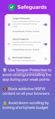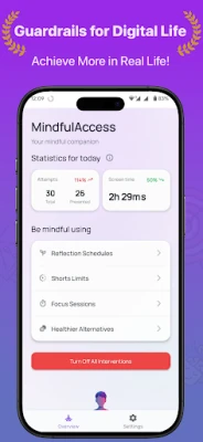 MindfulAccess är idealisk för studenter som vill minimera sociala medier under pluggtimmarna, för yrkesverksamma som tröttnat på att fastna i "doom-scrolling" mitt i arbetet, eller för alla som strävar efter en sundare relation till sin mobil. Den skiljer sig från traditionella appblockerare genom att fokusera på självmedvetenhet och beteendeinsikter över tid, vilket ger dig varaktig kontroll. Du får en djupare förståelse för dina digitala vanor och triggers. MindfulAccess nöjer sig inte med att bara spärra appar – den omformar ditt förhållande till din enhet, en medveten paus i taget. Din personliga data stannar alltid på din enhet, och AI-analysen utförs säkert utan att lagra identifierbar information, vilket garanterar din integritet.