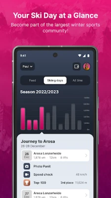 Med Skiline får du full koll på din skidstatistik. Se exakt hur många höjdmeter du avverkat, din totala sträcka utför och antalet liftresor du gjort under dagen. Men det slutar inte där – föreviga dina bästa ögonblick med fartfyllda actionvideor och snabbhetsfoton, samt minnesvärda souvenirbilder från dedikerade fotopunkter. Skiline är dessutom designat för att vara exceptionellt batterisnålt, helt utan krav på GPS, och låter dig enkelt registrera ditt liftkort via NFC för en problemfri start på dagen.