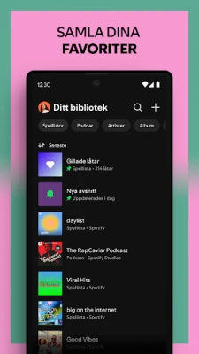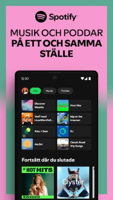 Skapa egna spellistor för varje humör, eller låt Spotifys intelligenta rekommendationer överraska dig med "Dina Dagliga Mixar" som är anpassade just för dig. Sök efter dina favoritlåtar med bara några ord ur texten och sjung med tack vare den inbyggda textfunktionen. Utforska de senaste spåren från artister som The Weeknd och Håkan Hellström, eller dyk in i musiken från dina favoritserier på Netflix. Bygg ett personligt poddbibliotek genom att prenumerera på populära poddar som Alex & Sigges podcast eller Rättegångspodden, så att du aldrig missar ett avsnitt. Njut av sömlös uppspelning på din mobil, surfplatta, dator, Chromecast, PlayStation, TV eller smartwatch.